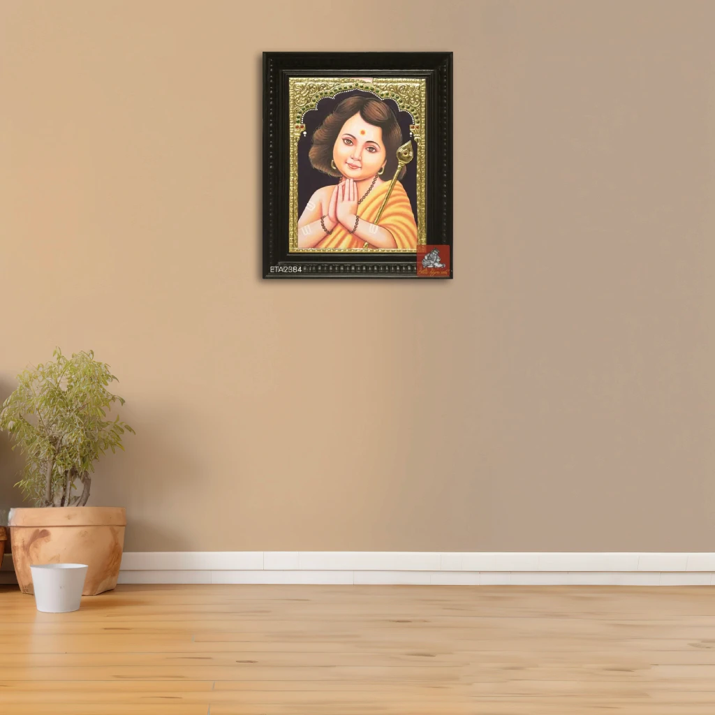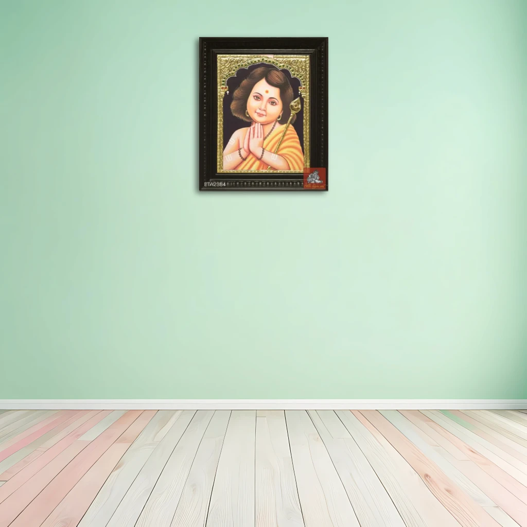 Name of Painting : Lord Murugan Tanjore Painting Size: 12×10 Finish: Gold Foil Type Of Frame: Chettinad Wooden Material: Plywood, Chalk powder, Gold foil, Semi precious stones,poster colors Usage: Pooja room, Wall Decoration, Interior Decoration Brand: Ethnic Tanjore Arts