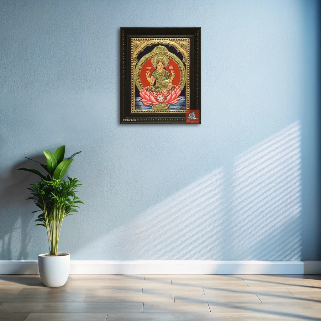 Goddess Lotus Lakshmi Tanjore Painting (15×12)